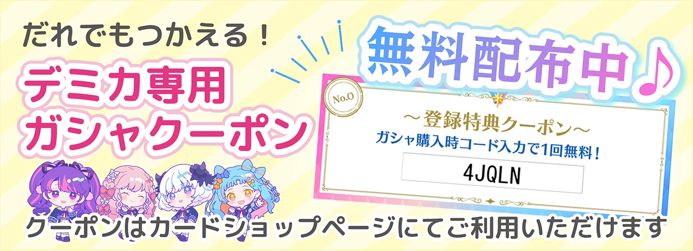 配信内で配布されたカード(シリアルコード)やプロモーションカードの裏面に記載されている16桁のシリアルコードを空欄にご入力ください。 入力完了後、「カードを取り込む」を押すとアイカツアカデミー!カードの取り込みが完了します。 取り込んだアイカツアカデミー!カードは「デジタルアルバム」に登録され、カードボイスをお楽しみいただけます。